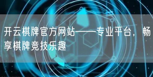 开云棋牌官方网站——专业平台,畅享棋牌竞技乐趣